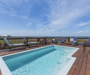 The back deck, which includes a swimming pool is where you'll spend many hours when you're not in the water. The pool can be heated for $50/day.