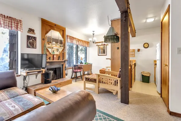 This pet friendly unit boasts old school charm with everything you need to enjoy a break from the "real world". Cozy up on the large sofa with a great book, the fire will keep you warm in the winter, or enjoy the tree views in summer. This condo is located right behind the Cross Country and Adventure Company and Bear Valley Snowmobile, where you can rent equipment for year round outdoor activities. Also in walking distance to the lodge, general store and other village amenities. Park your car right in front of the building and don't get back in it until you are headed home! This one bedroom unit offers a queen bed as well as large windows for plenty of natural light in the morning. Come Enjoy all that Bear Valley has to offer. Winter, spring, summer or fall we look forward to welcoming you soon!