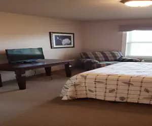 T316 - Spacious 1 bedroom/ 1 bath condo at Tagalong Golf Resort. The unit has a queen bed, full kitchen, living room, fireplace, and walk out patio to the lake.