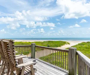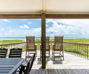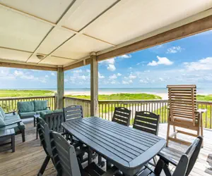 Amazing beachfront home with easy beach access, incredible views and loads of amenities. Large living, dining and kitchen space allows everyone to enjoy meals, movie night and quality time together. On the deck you will find outdoor furniture for lounging under covered area, deck chairs for soaking up the sun, table and chairs for outdoor dining or morning coffee, all while taking in the ocean air and expansive view of the Gulf! When you are ready to spend some time on the beach, you will appreciate the quick trip to the beach as this beachfront home is seconds from immediate beach access adjacent to the house. WiFi and Smart TV's in all bedrooms and Living room. On the ground level is plenty of parking, outdoor shower, grill and picnic table. Beaches Be Trippin' is the perfect choice for your Crystal Beach getaway!