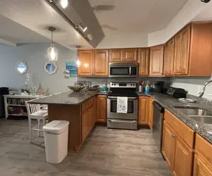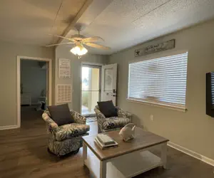 Salty Dog is a wonderful destination for a family vacation. The location of this vacation rental is a downstairs unit, providing easy access for beach goers and fishermen. It's just a 2-minute walk to the beach, where beach chairs are available for guests to use and relax. Across from the condo, there is a pool and a hot tub for guests to enjoy and unwind. Two designated parking spaces are available in front of the condo, noted with the unit number 101. The condo is beautifully decorated and offers 1200 sq ft of living space, providing ample room for relaxation and comfort. The well-equipped kitchen includes a dishwasher, range oven, refrigerator, microwave, and various small appliances, ensuring convenience for guests. Additionally, the condo features a washer, dryer, central air, and heat for added convenience and comfort. For outdoor cooking, there is also a grill available, and guests can unwind on the private patio with deck furniture.