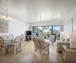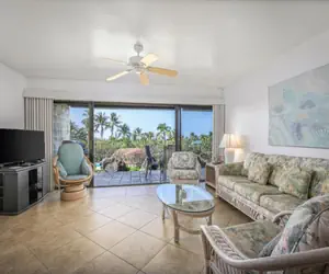 Keauhou Punahele #B-107 is a beautiful ground floor 2 bedroom, 2 bathroom condo with approximately 1200 interior sq feet. It sits right on Keauhou Country Club golf course. Enjoy an expansive lanai that reaches from living room to the master bedroom. It's equipped with patio furniture, a private gas grill and roll down sun shades to keep the unit cool.