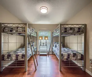 The master bedroom with amazing river views has a King-size bed and cable TV with a private full bathroom with a deep soaking tub and walk-in shower. The master bedroom has patio access as well. The second bedroom has a Queen-size bed. The 3rd bedroom has 2 Twin over Twin bunk beds. Both guest bedrooms are conveniently located next to the guest bathroom. There is a den off the living room for privacy if you need to work before heading out on the river for a fulfilled day!