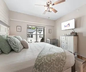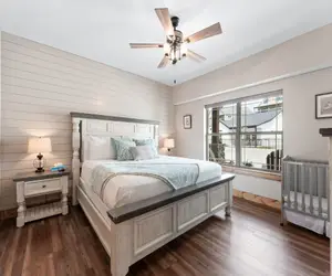 1st Bed on Right: King Bedroom with attached bath. Pack-n-Play in Bedroom. Walk-In shower with a seat.