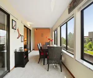 The condo is equipped with a full kitchen, allowing you to prepare your favorite meals and snacks with ease. After a day of skiing or exploring, you can unwind by the gas-burning fireplace in the comfortable living area. Step out onto the glass-enclosed balcony to take in the beautiful slope views, a perfect spot for morning coffee or evening relaxation. Being just 150 yards from the nearest lift, you'll have quick and easy access to the slopes, maximizing your time for winter sports and activities.
