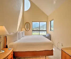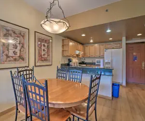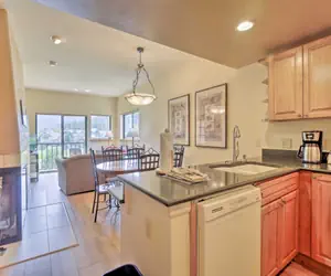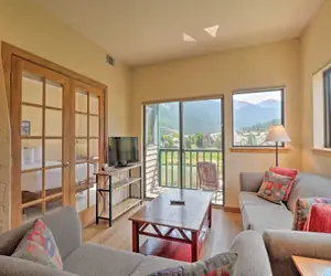 Enjoy the warmth and ambiance of the wood-burning fireplace and take in the fresh mountain air from the private balcony. The condo is located just 150 yards from the nearest ski lift, providing easy access to the slopes. For relaxation, guests have access to the resort’s athletic club, which includes a pool and hot tub, although it is not located in the building.