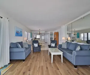 A beautiful view of the ocean and beach greets you. In the living room you will find, a large flat screen TV with cable, seating for all guests including two comfortable leather chairs, sofa bed for extra sleeping area, and floor to ceiling views of the ocean. Step out onto the balcony through the brand new sliding glass doors every morning and enjoy the day with a sunrise and your cup of coffee. From this balcony you will have privacy as no other guest in the building can see you. The balcony is an inviting place to entertain, sunbathe, or relax with a good book. There’s a great view of the activity on the beach. In the evening, enjoy a sunset by the front door with an afternoon drink. On the top floor, there are only two condos and the condo is on the other side. If you are looking for privacy at your condo, unit 73 is your choice.