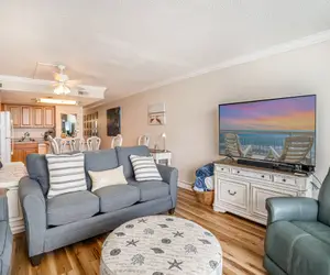 DIRECT BEACH ACCESS The Amazing, Oceanfront View of the Atlantic from the balcony of our one-bedroom condo is Priceless! These condos come with a fully equipped kitchen for you to prepare meals when you don’t feel like venturing out on the town to try one of our local restaurants. The large living area boasts views for miles and provides seating for all guests to enjoy time together while on vacation. The bedroom features a King Bed (recently updated to a top-of-the-line Tempur-Pedic Mattress) and offers a full bathroom with a shower/tub combination. There is a bathroom located along the hallway with a shower stall. Additional sleeping arrangements include two sleeper sofas and a daybed. There is a washer and dryer for your laundering needs located in the hallway as well. The living area and bedroom have TVs for your viewing pleasure. These living spaces are set up to be a home away from home while enjoying the Beach!