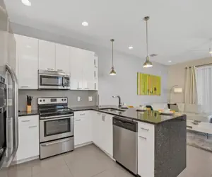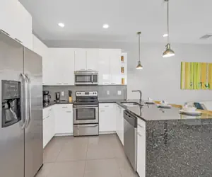 The clubhouse encompasses a fitness center, game room, sunbathing area, covered outdoor seating, hot tub, resort-style pool, and restrooms to ensure that your vacation is perfect in any way.