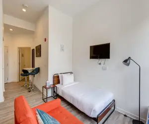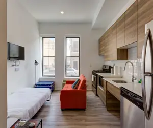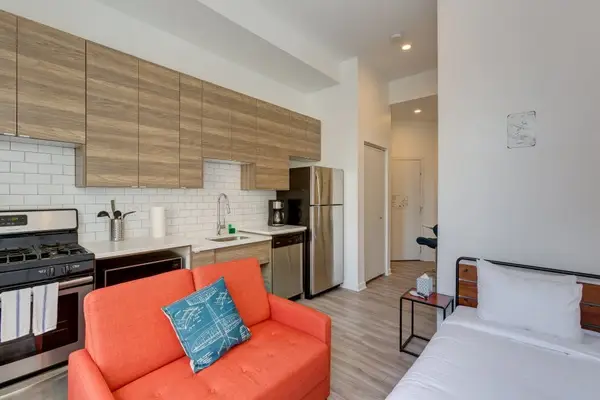 This studio apartment is in the perfect location in Chicago for getting to Downtown via the Blue Line L or to the Hot West Loop and Randolph street restaurant row. Walk to bars, shops, restaurants, coffee liquor stores and transportation with ease! You will love our spa baths, in unit laundry and full modern kitchens to make it feel like a home away from home. One of the best pizza spots in Chicago is only steps away!