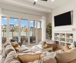 Welcome to Persian Palms—where luxury meets the lagoon. Set directly on the sandy shores of Desert Color’s 2.5-acre lagoon, this 5-bedroom retreat offers effortless access to sun, water, and relaxation. Inside, enjoy an open-concept layout, floor-to-ceiling windows, and seamless indoor-outdoor living. Spend your days paddling turquoise waters just steps away, soaking in the private hot tub, or gathering around the firepit at sunset. Perfect for two families, Persian Palms is your ideal Southern Utah escape.