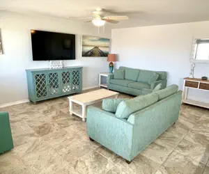 The living room has 2 sleeper sofas which also fold out and sleep 2 people per sofa.