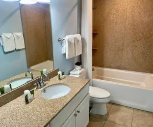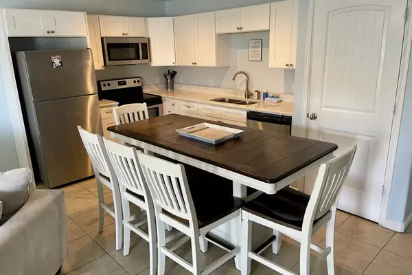 Completed in July of 2006, this 2 bedroom 2 bath condo comes with granite countertops, stainless steel appliances, a fully equipped kitchen, and granite bath surrounds. One bedroom has a king bed, a small fridge and microwave. The second bedroom has a queen bed. The living room has 2 sleeper sofas, which fold out and sleep 2 per sofa. This unit has its own personal around balcony with 2 chairs