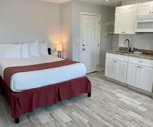 This 2 bedroom 2 bath motel efficiency unit has 2 queen beds.