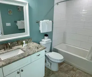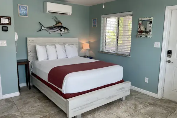 The 1 bedroom 1 bath motel efficiency unit has a queen bed, with a Sealy Comfort mattress, microwave, toaster, coffee pot, four burner stove and refrigerator.
