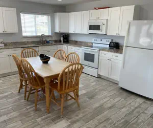The third bedroom has a small fridge, oven/4 burner range, microwave, and coffee pot.
