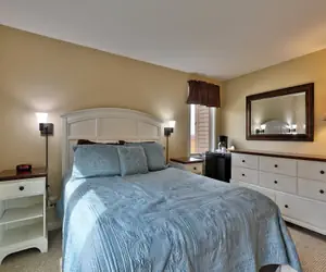 Our studio with one bathroom Fall Line condo in Killington, Vermont is located close to the slopes and the perfect place for your vacation no matter the season. This lock-off unit is perfect for up to two people with sleeping on one queen bed and featuring an ensuite bathroom. If you need more space, you can book the connecting condo next door and gain two more bedrooms and bathrooms. The community center at the center of the complex offers an indoor pool, hot tub, sauna, and small fitness area. Come see why Fall Line is one of the best locations in Killington! (NOTE: This is only one room with a bathroom. There is no kitchen or living space. Please see community center schedule below.)