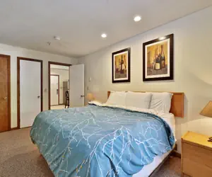 Our one bedroom condo sleeps four people in one king bed and one sleeper sofa and features a full bathroom with shower/tub.