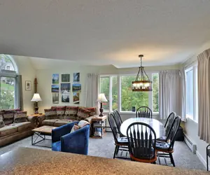 Our three bedroom, three bathroom Fall Line condo in Killington, Vermont is located close to the slopes and the perfect place for your vacation no matter the season. Spread out on two floors, you'll have amazing mountain views, a wood burning fireplace (free firewood provided), comfy living room, dining room, kitchen and patio. With the included lock-off unit, you can leave that open to the condo or closed off for additional privacy. The community center at the center of the complex offers an indoor pool, hot tub, sauna and small fitness area. An EV charger is also available onsite at the community center. Come see why Fall Line is one of the best locations in Killington!