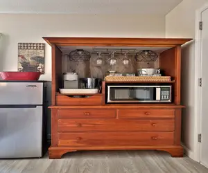 This charming Mountain Green hotel-room style condo has been lovingly remodeled by the owners and gives you the perfect location to start your Killington adventure. The studio is a "lock-off" unit from their next door condo (which may be rented together), and features a full bathroom with combo shower and tub, queen bed, sleeper sofa, desk, smart TV and breakfast nook with mini fridge, microwave and Keurig. While there is no kitchen, you'll hardly miss it as you head out the door to Killington Resort and all the town has to offer. Mountain Green Resort also offers a winter shuttle to the mountain, parking, indoor and outdoor pools, hot tubs, sauna, gym and onsite restaurant and ski shop. (See seasonal schedule for these amenities below.) You'll love it here!