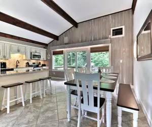 The Breakaway House is a two-floor duplex home located just off the main access road in Killington. This listing includes both the left and right units (Units A & B), which can be accessed together via the back deck or separately through the front doors. The home features six bedrooms, four bathrooms, two living rooms, two kitchens, and two dining areas, making it ideal for two families traveling together or for separating kids and adults between the two sides. You'll enjoy having the living spaces upstairs and sleeping areas on the main floor, offering comfort and privacy for larger groups. Smart TVs with streaming services, games, air conditioning, and a cozy wood-burning stove provide plenty of entertainment when you're home, while the open kitchens are perfect for gathering and celebrating together. In warmer months, relax on the back deck, fire up the grill, or enjoy the yard. Side A now features a hot tub, available for a $195 setup fee. Close to all that Killington has to offer, The Breakaway House is a fantastic home base for your Killington getaway. Pet friendly (pet fee may apply).
