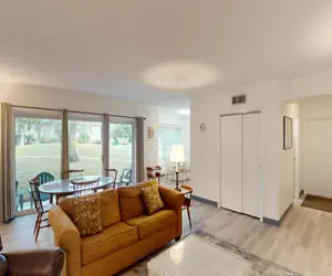 2 bedrooms, 2 bathrooms, living room, kitchen/dining, patio. MW, DW, W/D, 2 Smart TVs, WiFi/DSL. POOL PRIVILEGES @ DAYS INN. BEDS: 1 King, 2 Single, sofa bed. Accommodates 6. NO PETS, NO SMOKING.