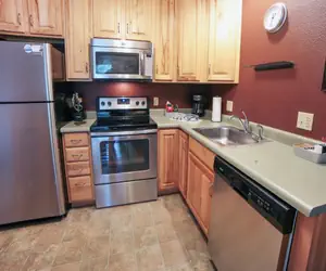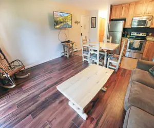 Located one mile from Rocky Mountain National Park, Unit 298 is a 1-bedroom, 2-bath condo with full kitchen. Featuring beautiful river and mountain views from its deck, evenings-in provide a restful alpine setting with a king bed in the bedroom, and a queen sleeper sofa and cable TV in the living room. Enjoy free DVD movie rentals, a heated pool in the summer, complimentary snowshoe rentals during the winter, and downtown shopping and dining five minutes from your door. Free Wi-Fi. Sleeps four.