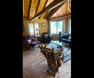 Exquisitely appointed, the Mountain Masterpiece is a 2-story, 3-bedroom, 1 ¾-bath log cabin on 2.2 private acres.