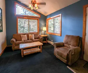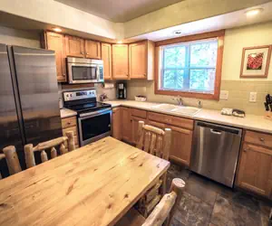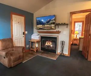 Featuring a large personal hot tub and full kitchen, the Arctic Sage is a beautiful 2-story, 3-bedroom, 2-bath chalet with three queen beds and a queen sleeper sofa.