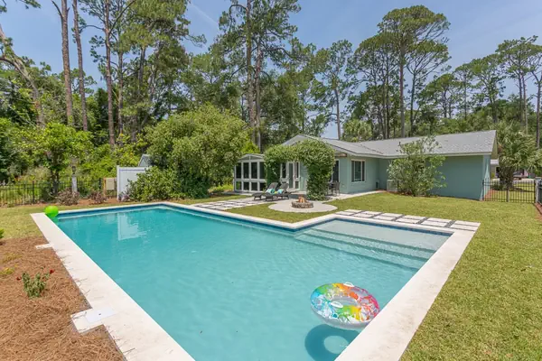 Located on a quiet beachside street, this immaculate, completely renovated and equipped 3 bedroom, 2 bathroom home also boasts a living room, family room, dining area, screened in sunroom and a large dine-in kitchen. Its huge, fenced, back yard with gorgeous pool makes it a great space where everyone can swim play, make S’mores in the fire pit, or adults can enjoy a quiet evening drink on the patio. One of the very best home rentals on historic Jekyll Island!