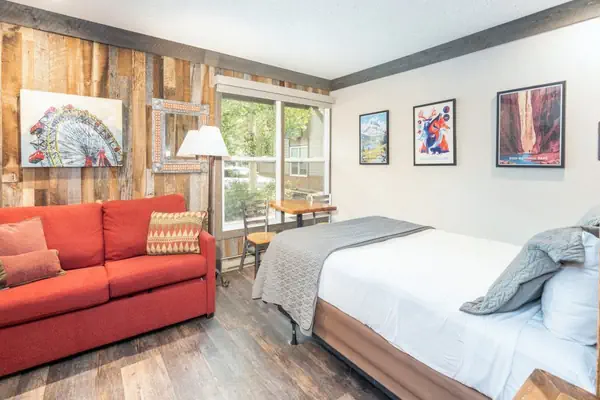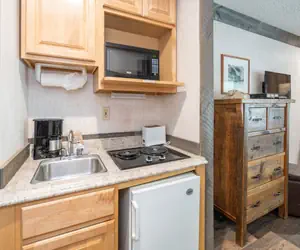 Complimentary wifi is included. A well-stocked vending machine and coin-operated laundry are located on the property. There is no A/C at the Mountainside Inn.