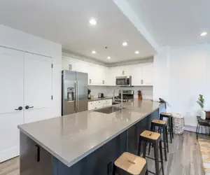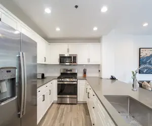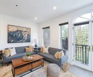 Enter this fully updated modern styled condo on the second floor and walk into the open dining area with seating for six guests and living room with a gas fireplace, large flat screen TV, balcony with mountain views. The living room is open to the kitchen, which has a breakfast bar with seating.