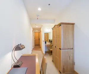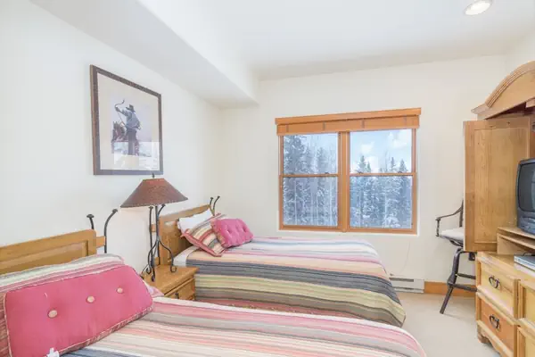 This room is a bedroom locked off from the larger condo, with its own private entrance and en suite bathroom. It has a king bed (can be made into two twins), flat-screen TV and bathroom with a separate shower and jetted tub. Every unit at the Bear Creek Lodge includes a fan, humidifier, hairdryer, coffee maker, starter coffee, and robes.