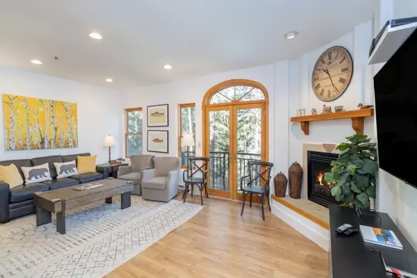 Enter this condo on the second floor and walk into the open dining area with seating for six guests and living room with a gas fireplace, balcony facing the mountainside (forest view) and a queen sleeper sofa. The living room is open to the kitchen, which has granite countertops and a breakfast bar with seating.