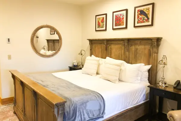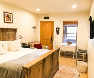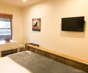 This lock-off room has a king bed, TV and an en suite bathroom with jetted tub and separate shower. There is also a mini-fridge and microwave in the room. Every unit at the Bear Creek Lodge includes a fan, humidifier, hairdryer, coffee maker, starter coffee, and robes.