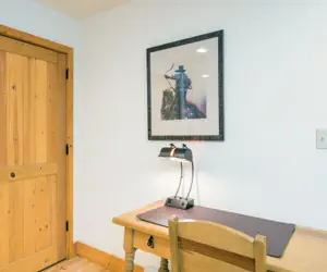 The primary bedroom has a king bed, TV, and an en suite bathroom with double sinks, a jetted tub and separate shower. There is also a safe in the primary bedroom. The second bedroom has a king bed that can be split into two twins, a TV, and bathroom in the hallway with a shower/tub combo. Every unit at the Bear Creek Lodge includes a fan, humidifier, hairdryer, coffee maker, starter coffee, and robes.