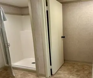 This is a hotel room with kitchenette (mini-fridge, microwave, two-burner stovetop, coffee maker and toaster). This room has a queen bed and a twin bed and private bath with a shower (no tub).