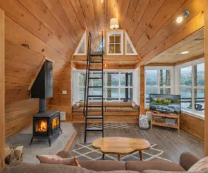Step into the peaceful embrace of Doc Roy's Legacy, where the haunting calls of loons at sunset and the graceful flight of a Bald Eagle create a nature lover's paradise. Nestled on the serene shores of Fish Lake, this recently renovated A Frame cabin blends seamlessly into its enchanting surroundings, offering a retreat that evokes the simplicity and joy of summer vacations at the family cabin. Please note that Fish Lake is best enjoyed as a fishing destination, as swimming is not recommended.