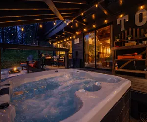 • Private covered hot tub overlooking the forest—perfect in all seasons