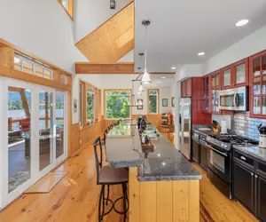 The kitchen is a true highlight: a culinary haven with panoramic lake views and everything needed for effortless in-home cooking. Enjoy: