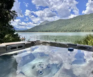 Alpine Lake Escape is the ultimate cabin retreat right on the shores of pristine Fish Lake. Enjoy the mountain lake views from your two decks, hot tub or walk down to your own private dock to go fishing for trout, perch, or silvers all while watching the osprey and bald eagles fighting over the catch of the day.