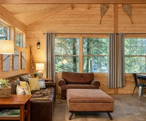 This thoughtfully curated cabin offers two cozy bedrooms: