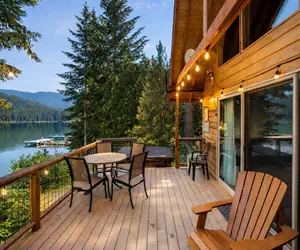 Nestled on the serene shores of a picturesque Fish Lake, Journeys End offers an unparalleled escape for your next adventure. This lakeside retreat features a private dock, inviting hot tub, and a soothing sauna, perfect for unwinding after a day of exploring the natural beauty of Leavenworth. Enjoy the stunning lake views from the deck, or cozy up as the fireplace crackles. Whether you're seeking adventure or tranquility, Journeys End has everything you need for a simple and unforgettable stay.