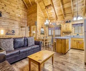 The cabin is located toward the rear of the resort, just around the corner from the swimming pool and clubhouse. It offers tons of room and a fully equipped kitchen where you can exhaust your creative cooking abilities. You can also cook out on the deck using the gas grill.