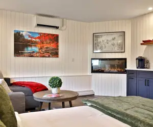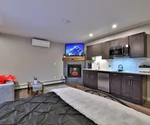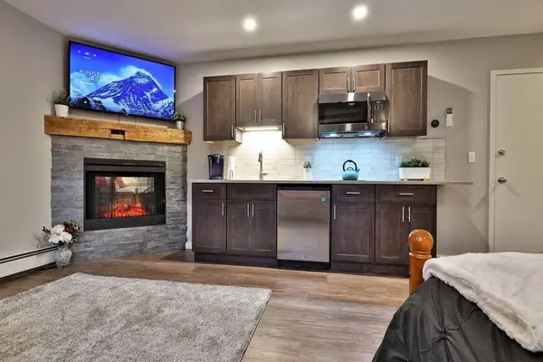 After a day on the slopes, you can relax in front of the gas fireplace. The kitchenette is equipped with a mini-fridge, microwave, electric cooktop, Keurig, and coffee maker.
