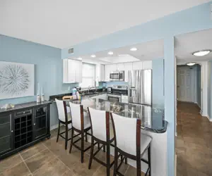 The fully equipped kitchen has everything you need to prepare meals with ease, whether you're whipping up a quick breakfast before heading to the beach or cooking a full family dinner. Guests can gather around the dining table for meals together or choose to dine al fresco on the private Gulf-facing balcony for an unforgettable beachfront experience.