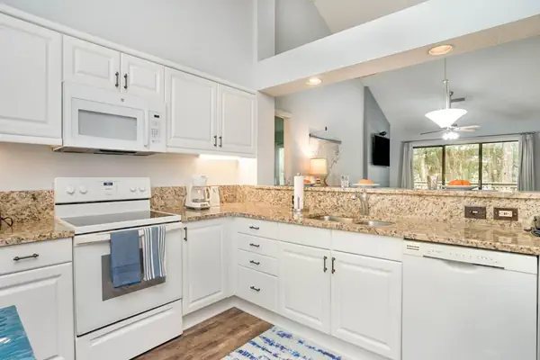 The remodeled kitchen is thoughtfully designed with granite countertops, refinished cabinetry, and a full selection of cookware and kitchen gadgets—everything you need to prepare delicious home‑cooked meals .