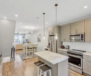 The Home: Step inside this practically brand-new 6-bedroom home, designed with comfort, style, and functionality in mind. There’s plenty of space for everyone, making it ideal for families, groups of friends, or colleagues traveling together. Enjoy two outdoor spaces, including exclusive rooftop access, where you can relax, soak up the city views, or gather for morning coffee and evening drinks. The open-concept floor plan and fully equipped kitchen make it easy for the whole group to come together. Whether you’re cooking a group meal, planning your day’s adventures, or simply enjoying some quality time together, this home effortlessly balances shared space and privacy. When it’s time to unwind, each of the six spacious bedrooms provides a peaceful retreat for a restful night after exploring everything Philadelphia has to offer.