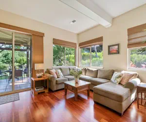 Living Area: The open floor plan with vaulted ceilings, large windows, and overhead fan make for a relaxing space with a sectional couch and large Smart-TV for your viewing pleasure. There are new Roku TVs in the bedrooms, don't forget to bring your streaming login information. The unit also includes high-speed WIFI internet to keep you connected.