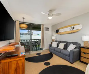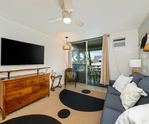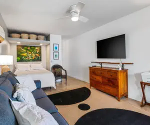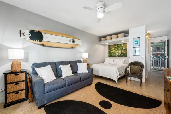 The living area has a new queen bed, a sleeper sofa, desk area to work and smart TV. Enjoy the box air conditioning unit in the studio or open the lanai doors and let in the Hawaii tradewinds. Have a cup of Kona coffee on the lanai and listen to the birds.